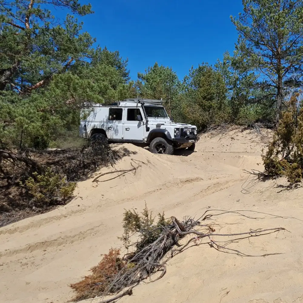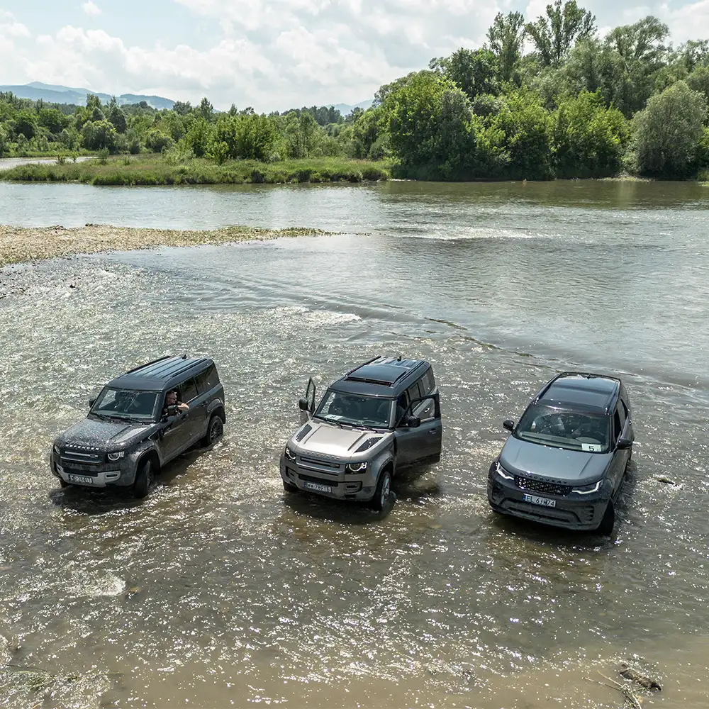 Do szkoleń używamy głównie samochodów Land Rover Discovery oraz Defender, które są już legendą wśród samochodów terenowych i autami znanymi m.in. z wymagającego rajdu Camel Trophy. Auta fabrycznie przygotowane do jazdy poza trasami, zostały przez nas dodatkowo doposażone, dzięki czemu doskonale radzą sobie z przeszkodami terenowymi.